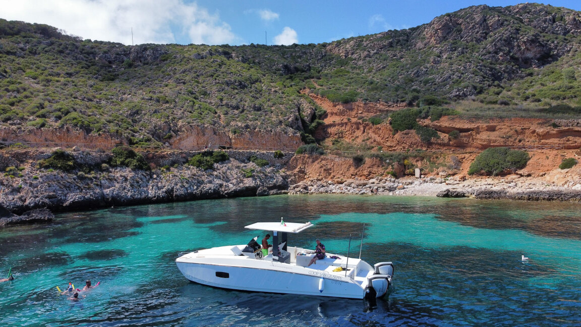 - Partenza dal Porto di Trapani e trasferimento diretto a Cala Rossa (circa 30 minuti di navigazione) dove effettueremo la prima sosta bagno/snorkeling della giornata in un mare azzurro cristallino circondato da migliaia di pesci (occhiate).