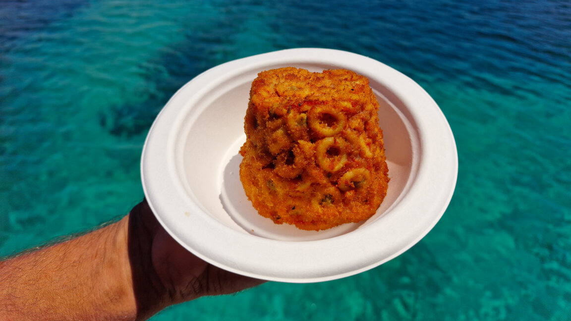 La pausa Lunch/pranzo verrà organizzata sul catamarano, all'ombra, con attorno uno scenario unico...il mare, (*) in una caletta tutta riservata a noi lontani da confusione, auto e smog. Il menu sarà tutto a base di stuzzicherei tipiche trapanesi. Avrete la fortuna di assaporare uno squisito PANE CUNZATO oppure a scelta un TIMBALLO DI ANELLETTI SICILIANI accompagnati da fresca e deliziosa frutta di stagione (NO catering ma SINGOLE e personali porzioni già pronte). Nulla di cucinato sul posto, tutto già pronto e pre-confezionato nel rispetto delle normative HACCP e sicurezza di contatto.